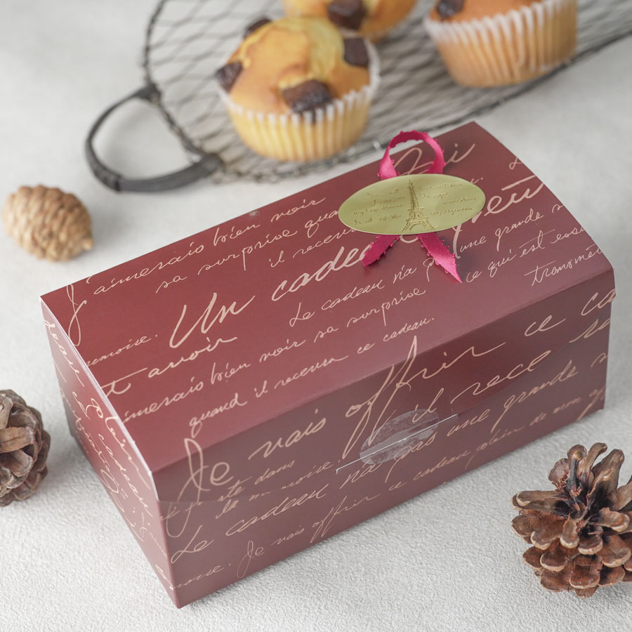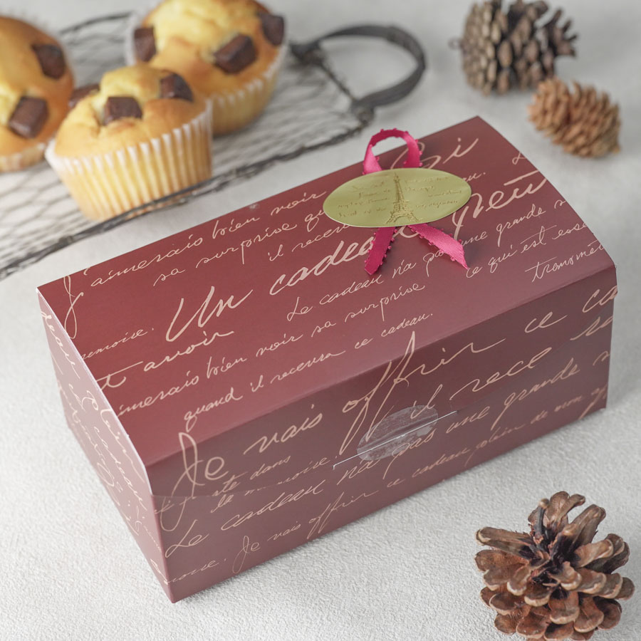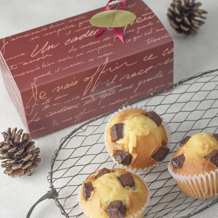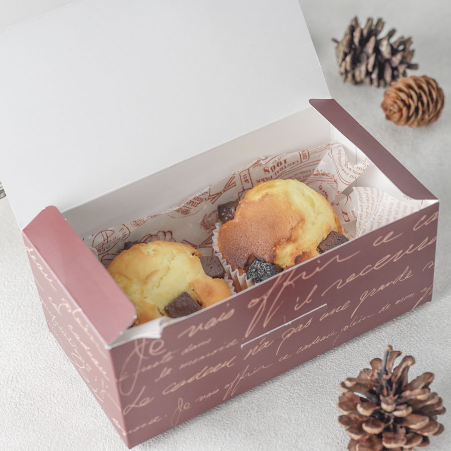 ギフトボックスとワックスペーパーを使用したマフィンのラッピング。