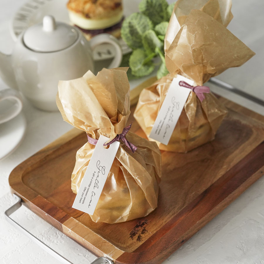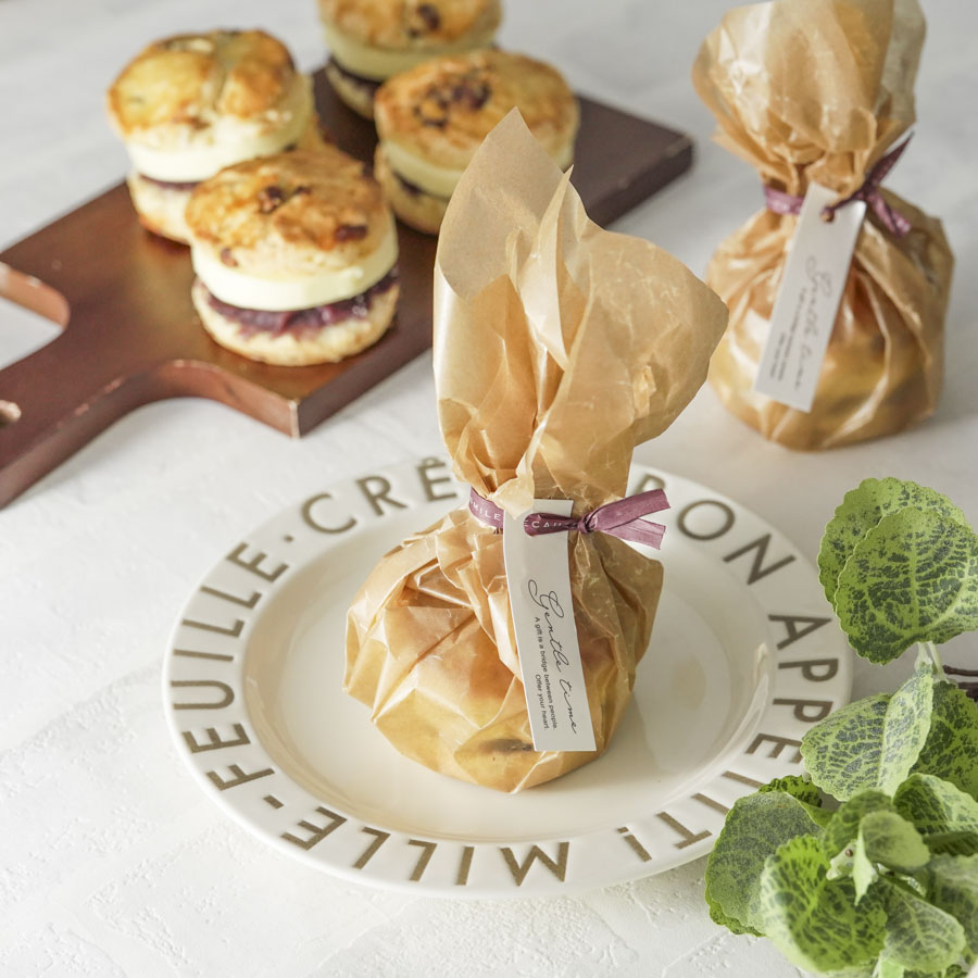 周りのワックスペーパーを中心に持ってくるようにしてスコーンを包む。