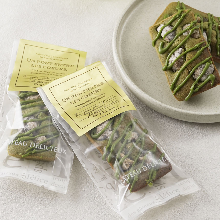 折り曲げやすいように、シール中央にミシン目が入っているギフトシールを使ったフィナンシェのラッピング。