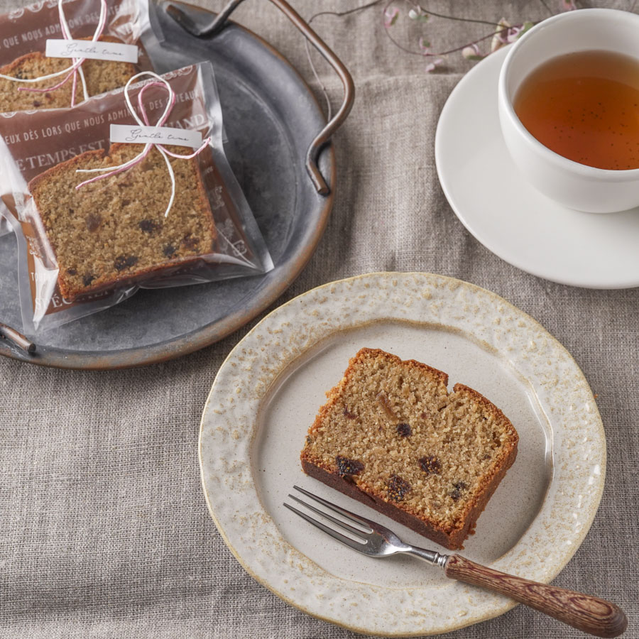 柄入りのガス袋を使ったポレンタケーキのラッピング。