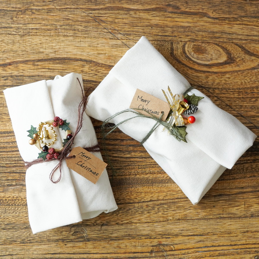 シンプルなラッピングクロスとケーキ用ピックを使ったシュトーレンラッピングです。