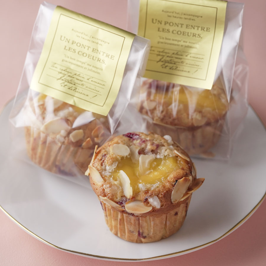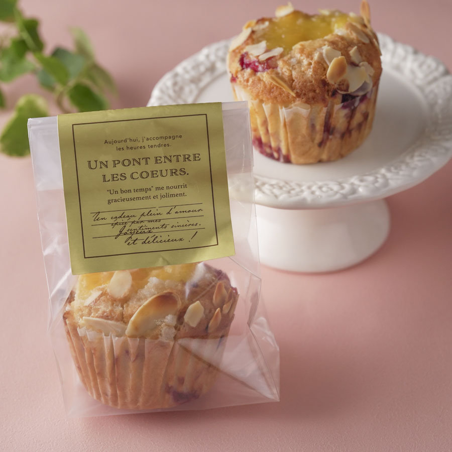 折り曲げやすいようにミシン目の入った帯シールを使ったマフィンのラッピング。