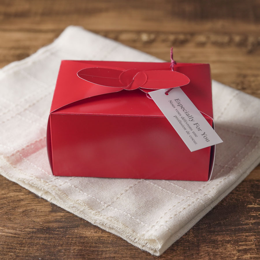 紙紐を輪に結び、ギフトボックスの留める部分に引っ掛ける。
