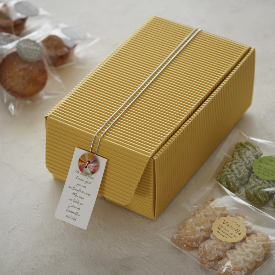それぞれを袋に入れて、箱に詰めれば洋菓子屋さんにあるようなギフトボックスに。