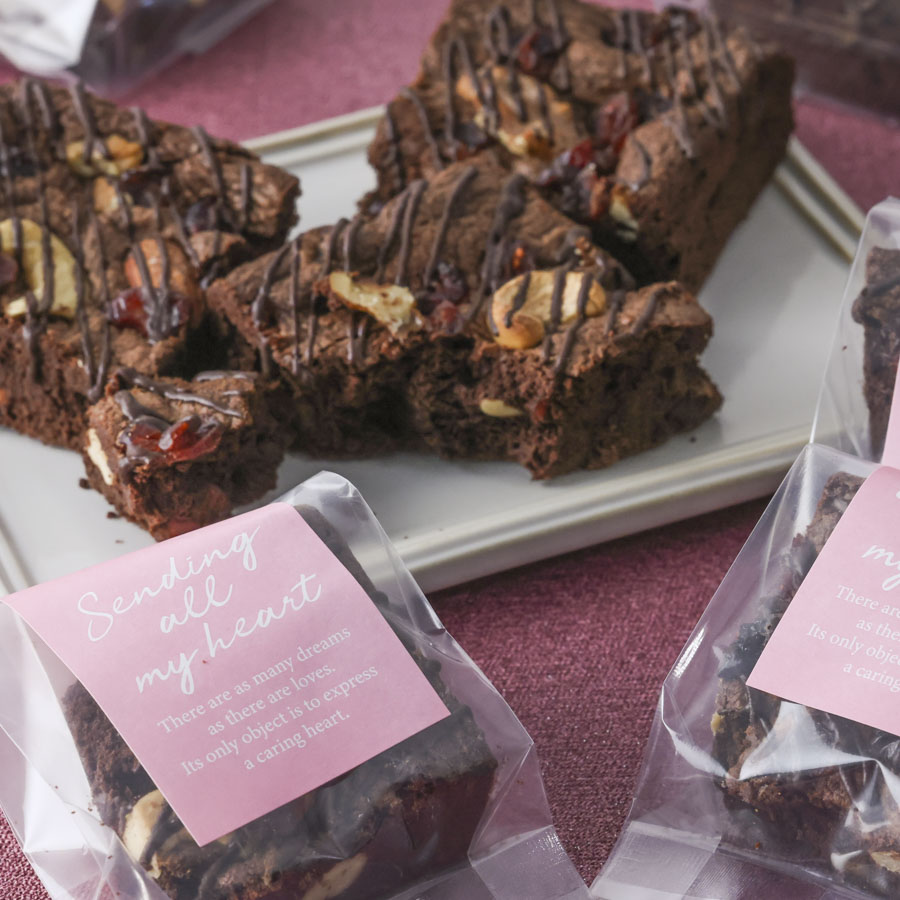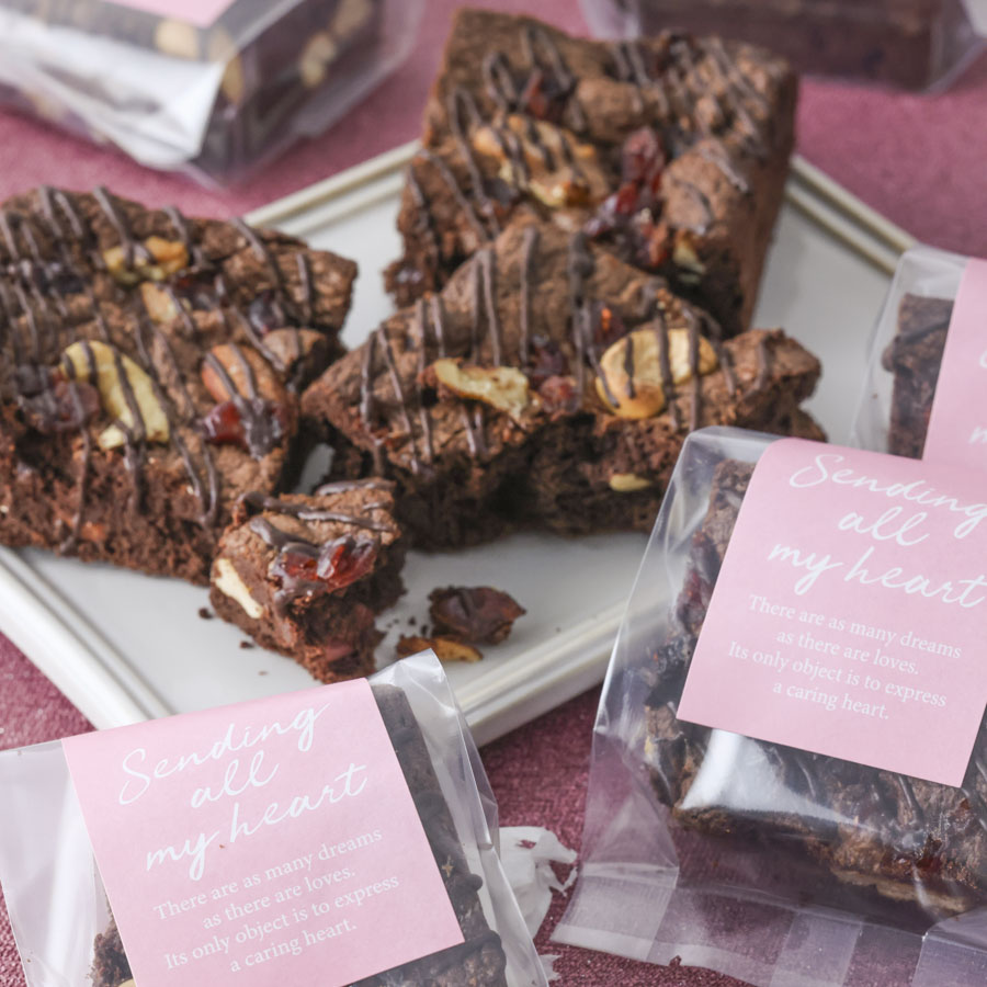 ブラウニーを9等分にカットし、クッキングシートで軽く包んで袋に入れる。